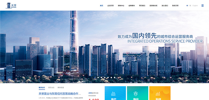 天誉成立于1996年,总部位于广州,经过二十余年的发展,成为以房地产开发为主营业务,同时在青创发展、物业服务、文体旅游、医疗健康、信息产业等领域多元发展的综合性集团。 天誉旗下企业:天誉置业(控股)有限公司,2006年成为香港联交所主板上市公司(证券代码:HK00059),主营地产业务;天誉物业管理有限公司,2014年获得国家一级物业管理资质,主营物业服务;