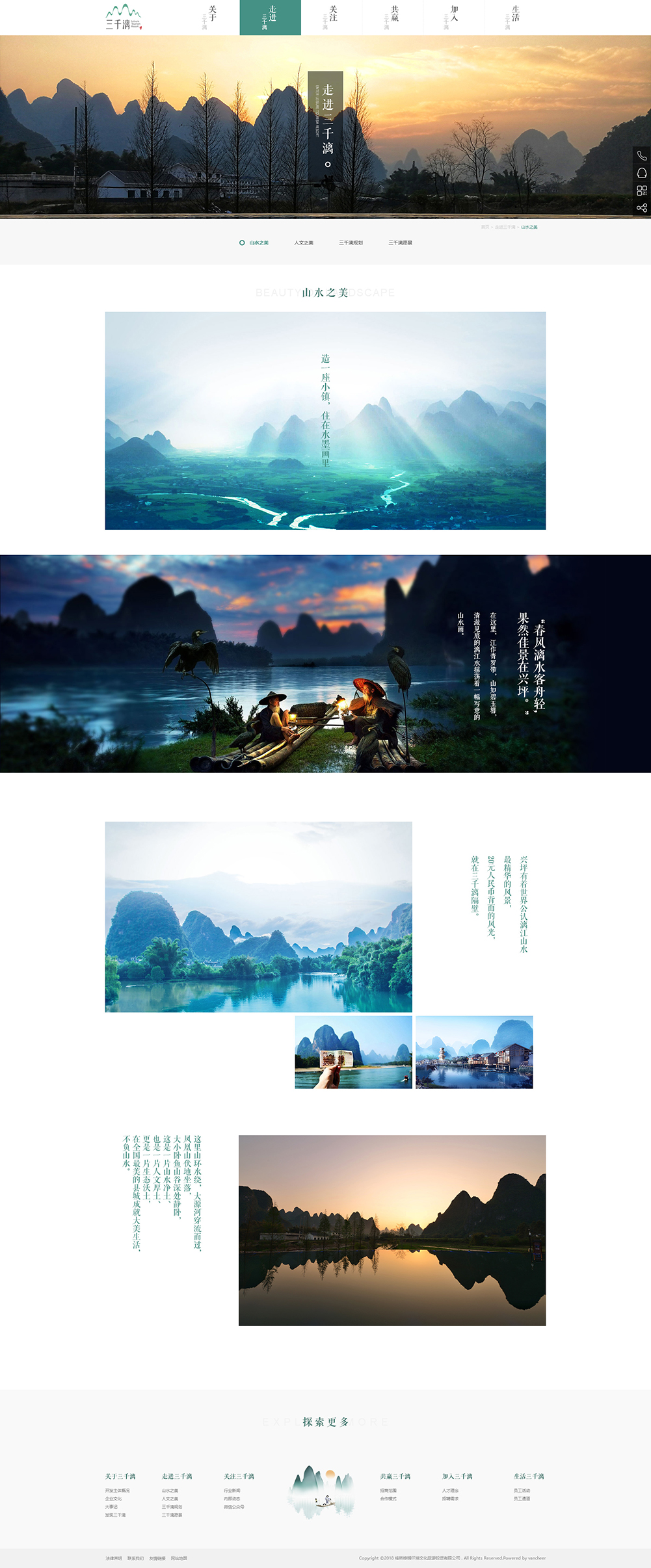 三生三世三千漓,漓江渔火节指定大型水秀 每当夜幕降临,人群汇聚大源河畔,且观且行,移步换景,共历一场歌舞与山水渲染而出的 风俗幻梦。桂林山水是对桂林旅游资源的总称,世界自然遗产。典型的喀斯特地形构成了别具一格的桂林山水,桂林山水所指的范围很广,项目繁多。桂林山水山青、水秀、洞奇、石美,包括山、水、喀斯特岩洞、石刻等等 在桂林山水中又以漓江流经阳朔的那一段最为美丽.