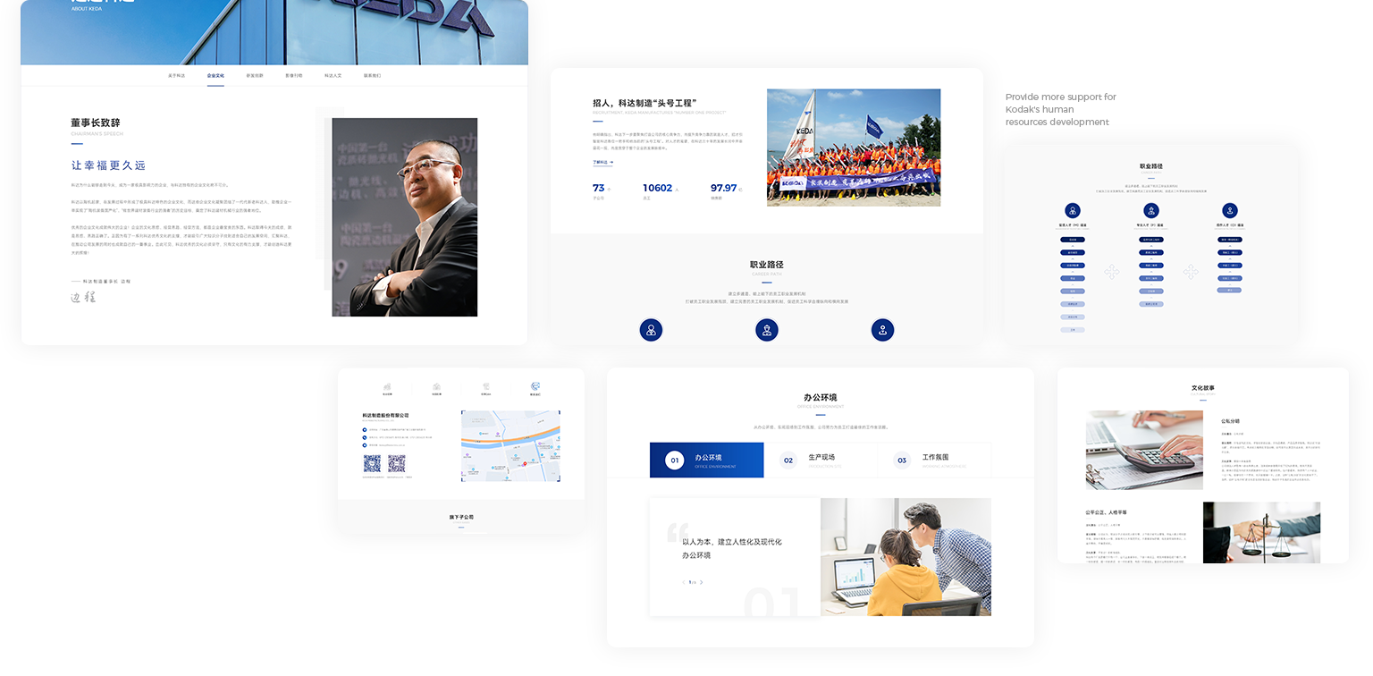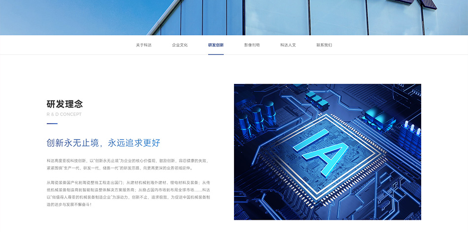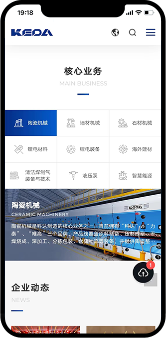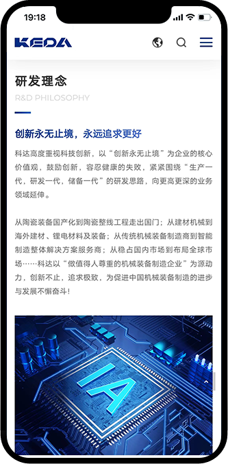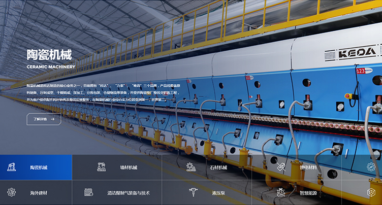 科达制造一举实现“陶机装备国产化”、“做世界建材装备行业的强者”的历史目标,成长为我国乃至世界陶瓷机械行业的龙头企业。为了树立公司在行业中的专业性和领导地位,希望通过新的官网平台来传递科达制造的企业形象,提升品牌调性,吸引潜在客户与公司建立联系。