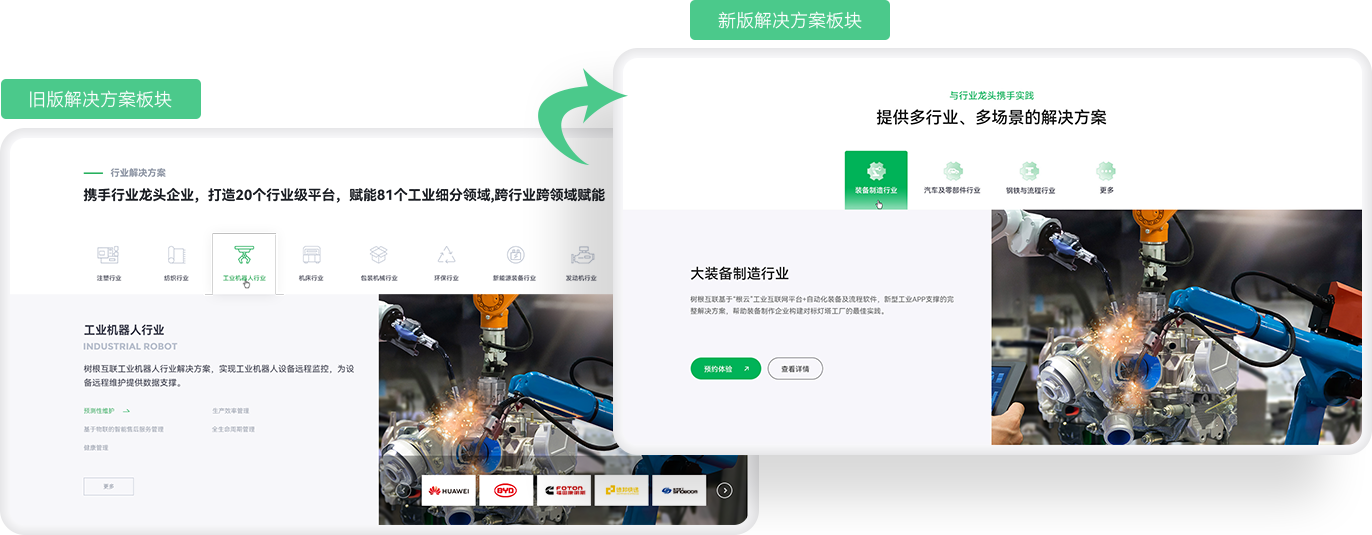 树根互联是工信部遴选的第一批国家级跨行业跨领域工业互联网平台企业,为全球各行各业工业互联网数字化转型服务,为了更高效地向用户传递更具竞争力的信息,需升级官网,从而达到突出产品价值,提升品牌调性,提高获客转化率的目的。